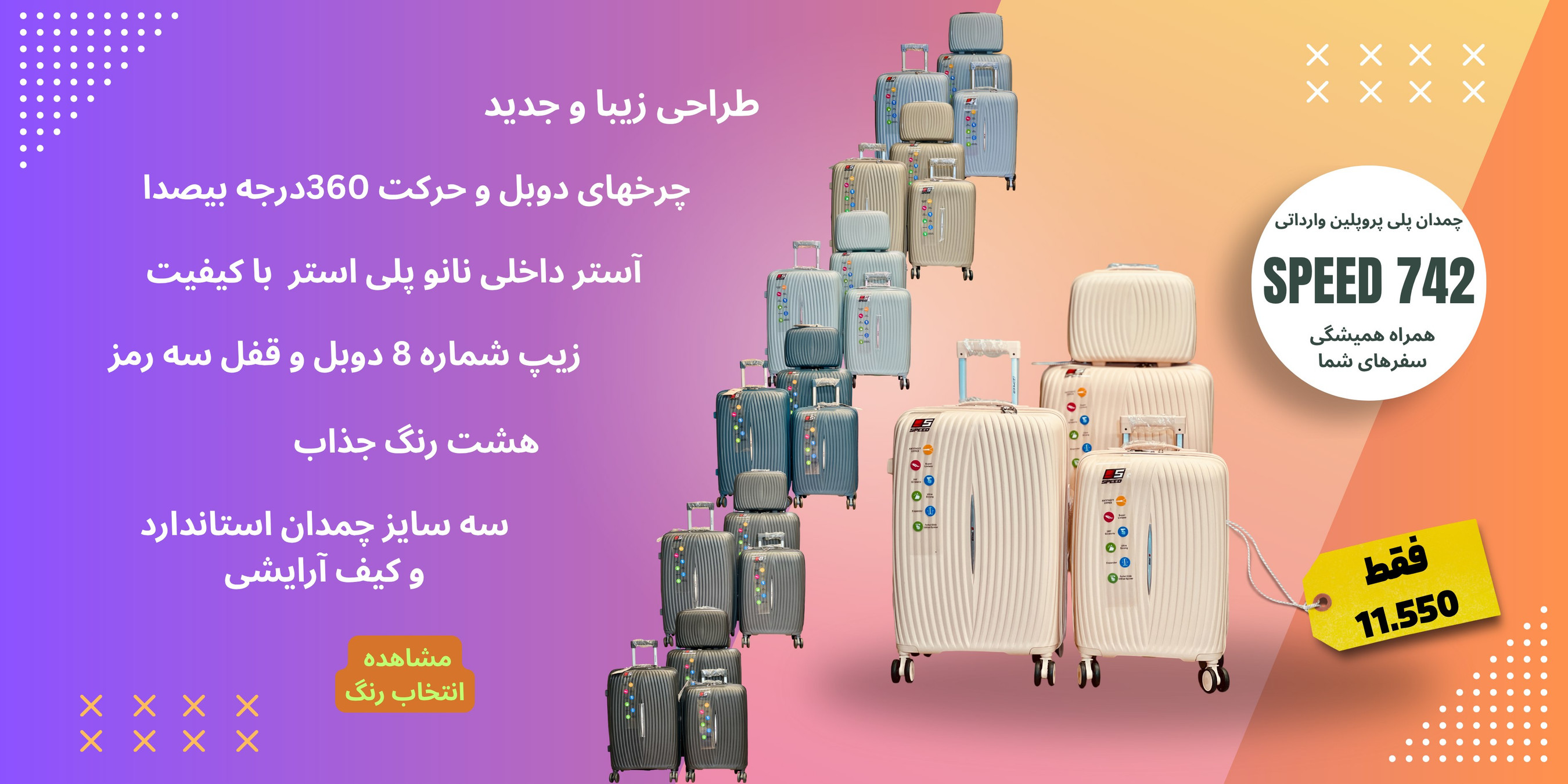 ست چمدان 4 تکه اسپید کد:742 مدل: لاینو