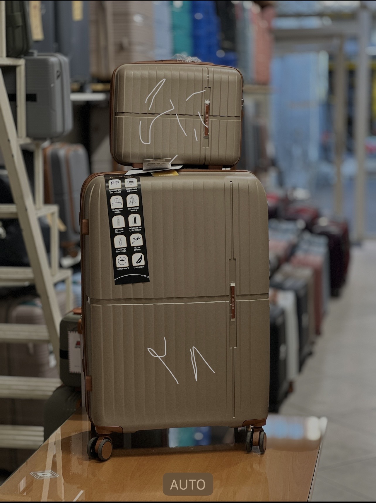 ست تخفیفی چمدان هانتر سایز بزرگ و آرایشی رنگ شامپاینی