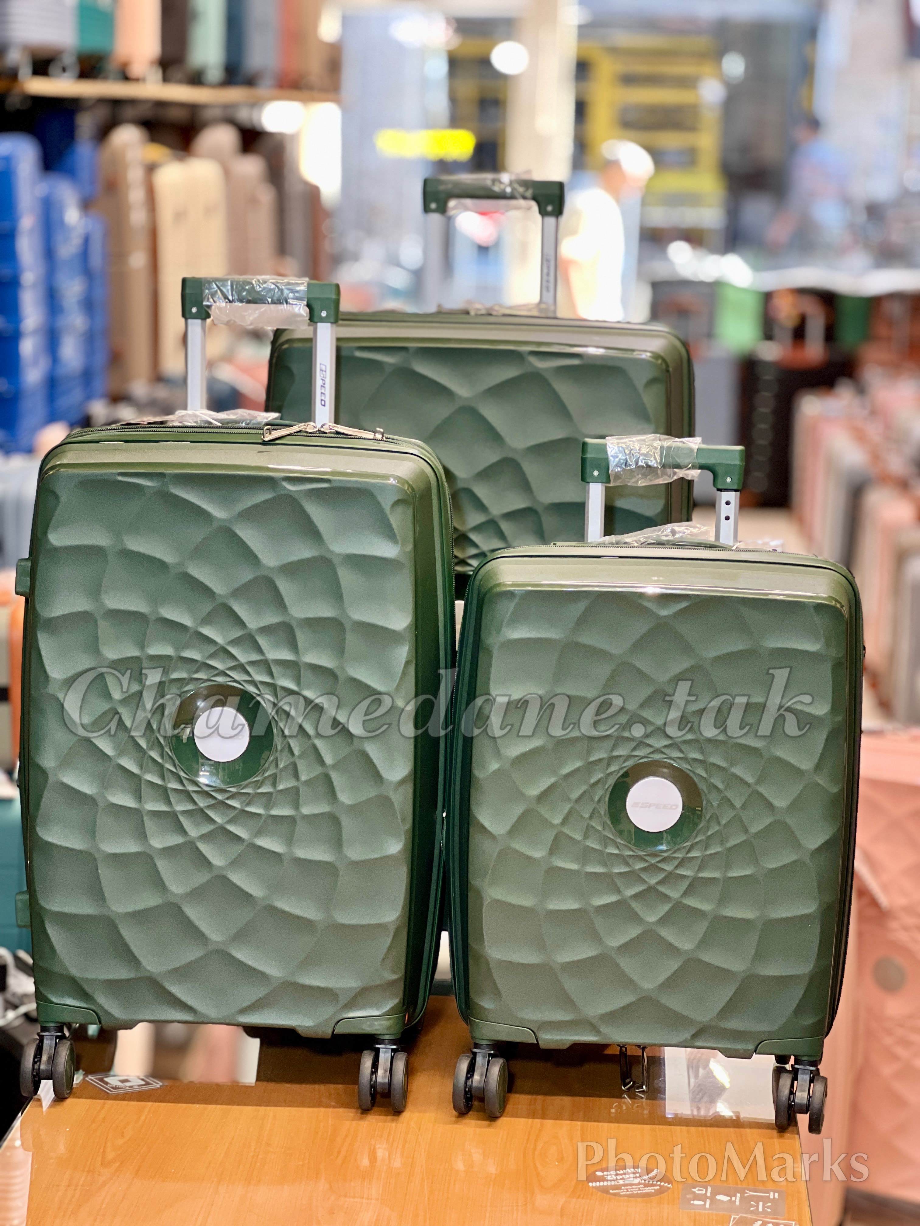 طراحی خاص و بافت هندسی بدنه این مدل، علاوه بر زیبایی ظاهری، باعث مقاومت بیشتر در برابر خط و خش میشود. این ست در سه سایز کاربردی عرضه میگردد تا برای انواع سفرهای کوتاه و بلند مناسب باشد.